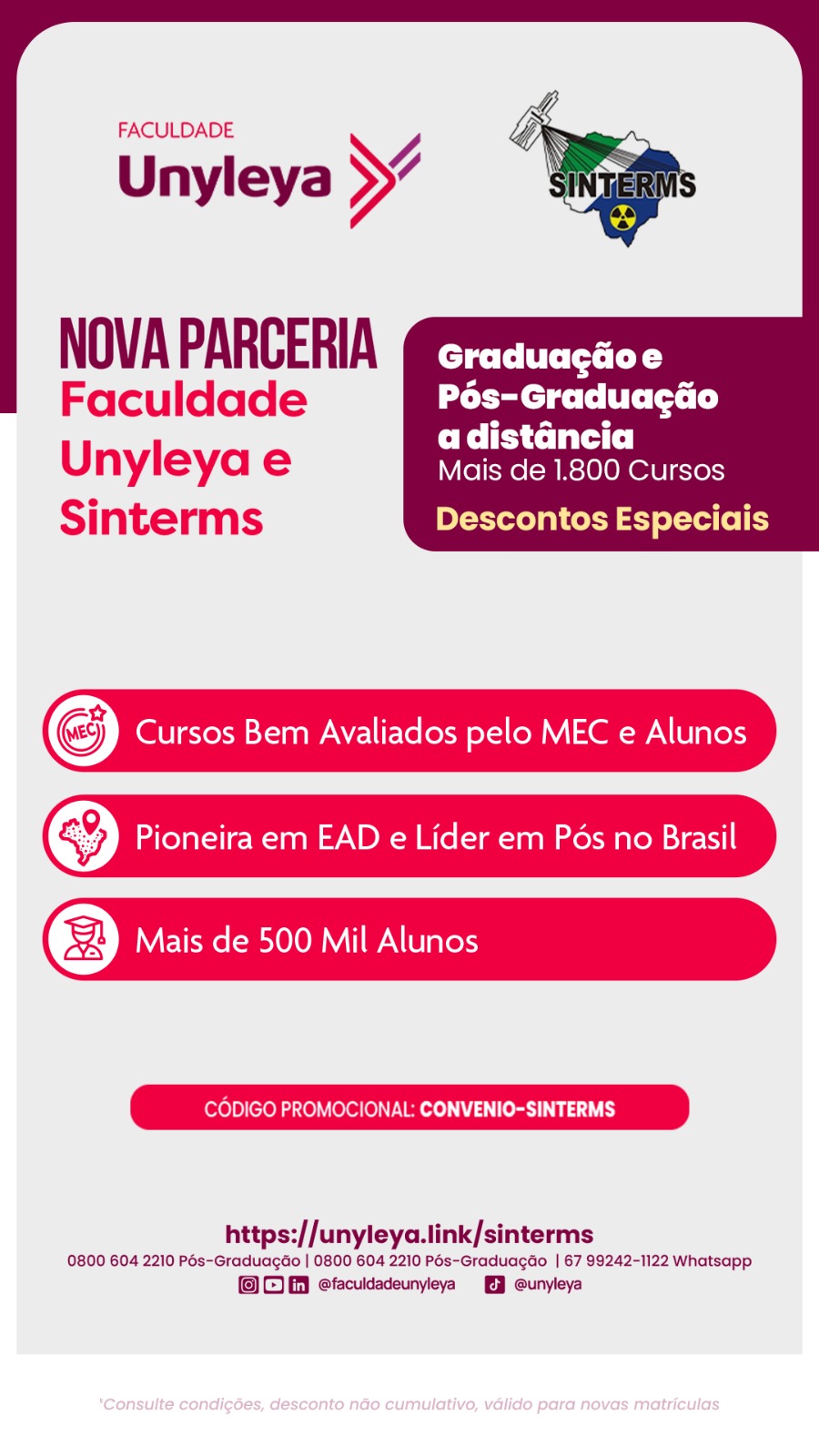 Faculdade Unyleya, referência em EAD e líder em pós-graduação no Brasil. Filiados e dependentes agora contam com descontos especiais em mais de 1.800 cursos de Graduação e Pós-Graduação.