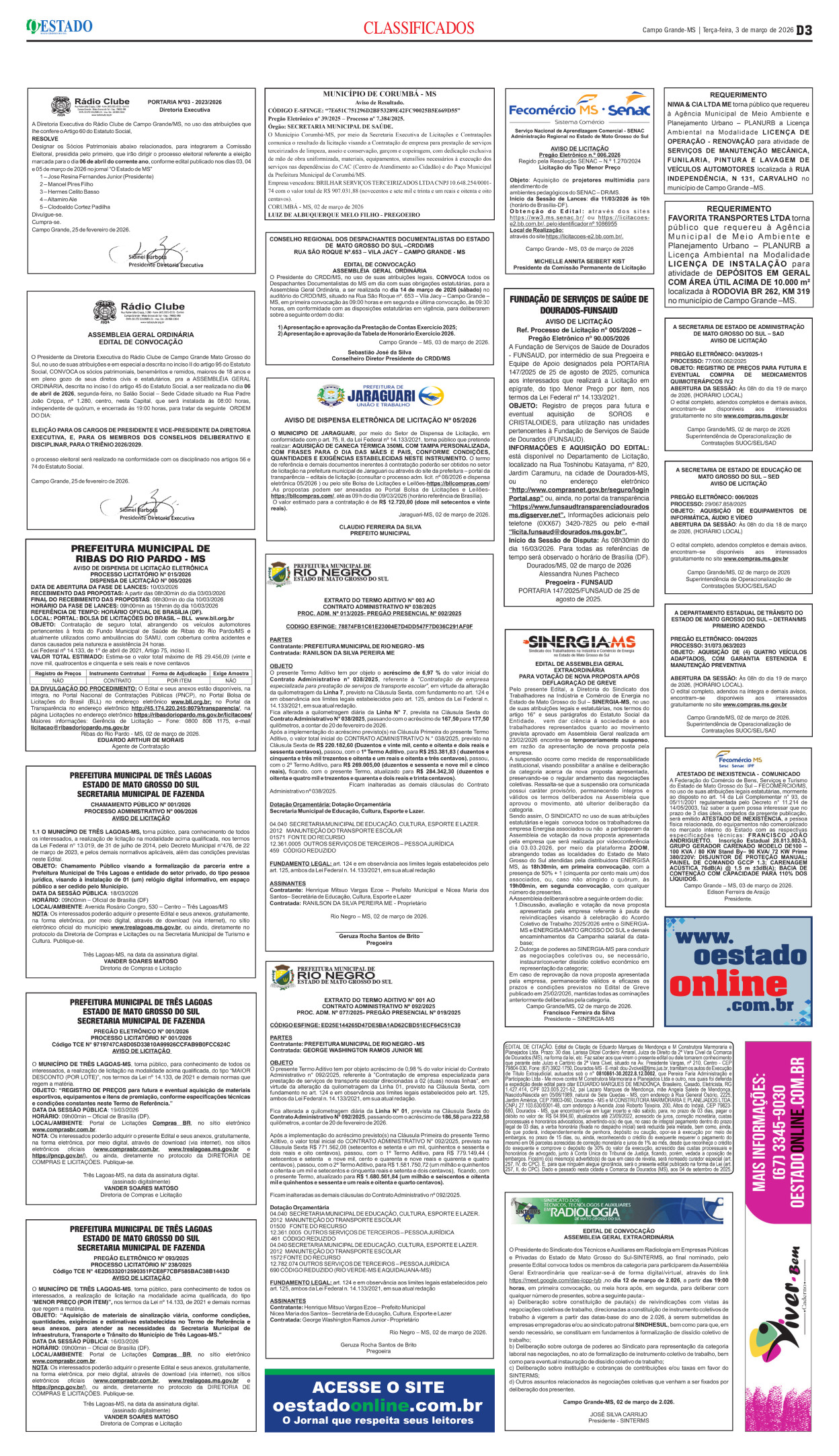 Rua Maracajú, 371, Campo Grande-MS - 79002-214, Telefone: (67)-3384-5972/(67)-9292-1704 - email: