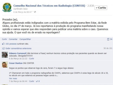 Em 1º de março, o programa Bem Estar da Rede Globo exibiu uma matéria sobre raios X, ultrassom e outros exames feitos a partir da radiação ionizante. Infelizmente, a reportagem prestou informações duvidosas e causou revolta entre centenas de profissionais da área, que manifestaram suaindignação em nossa página no Facebook.